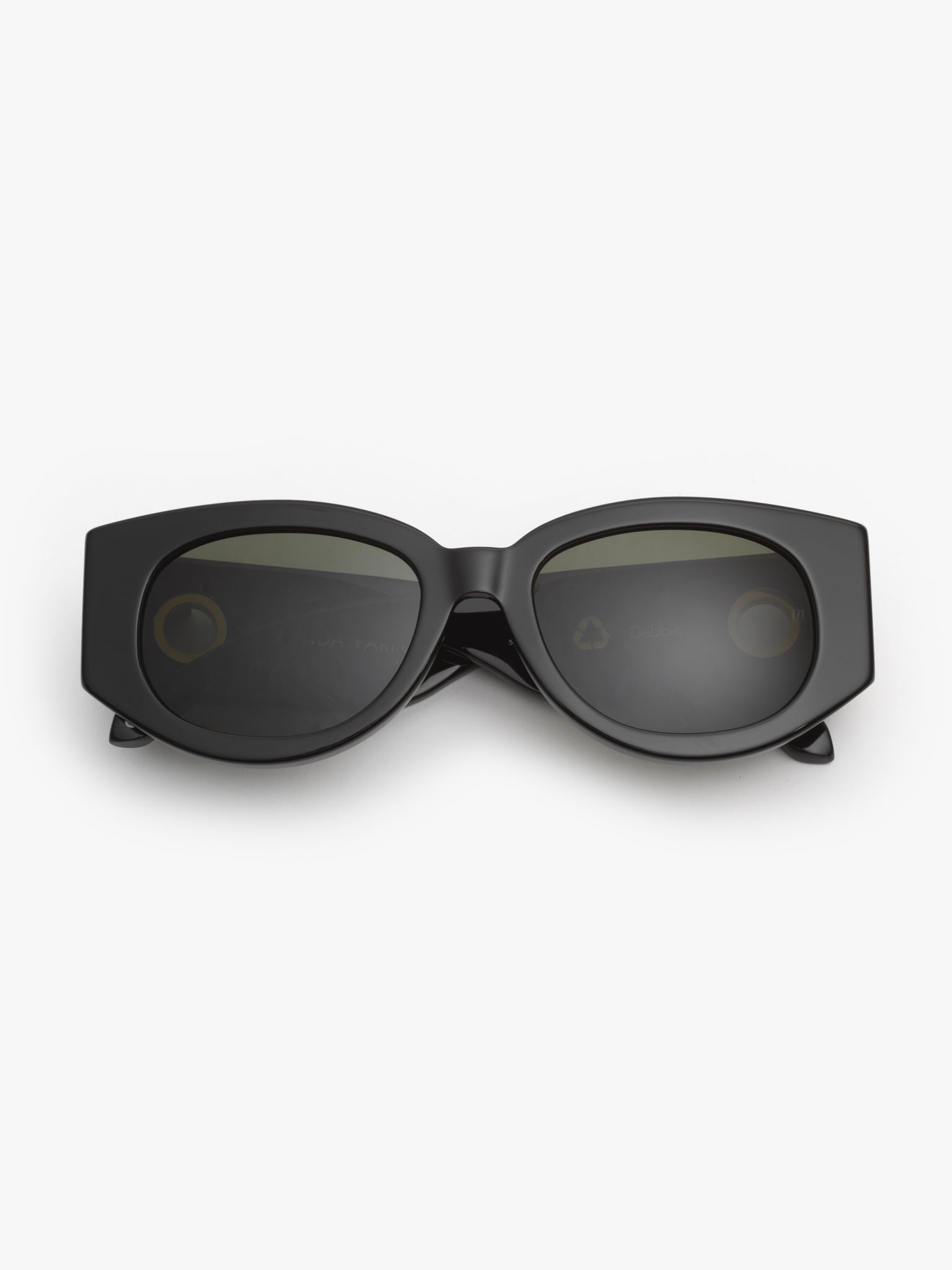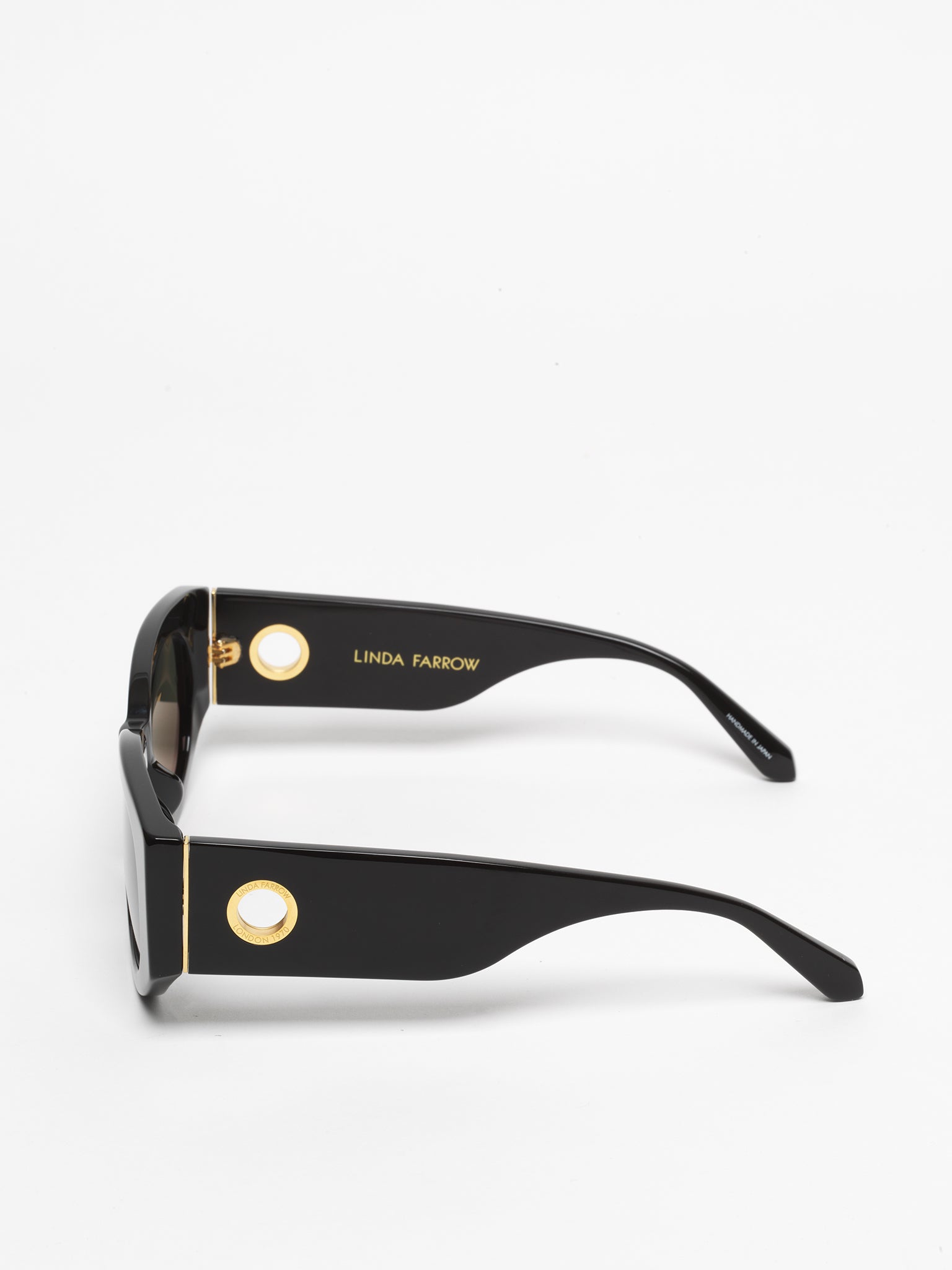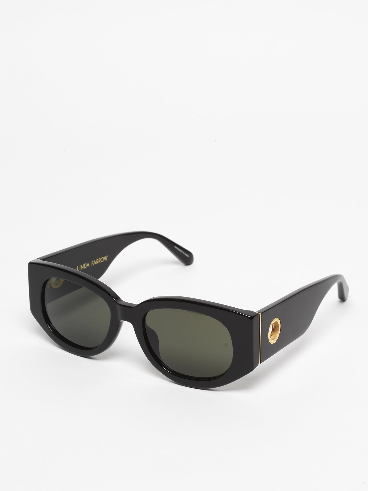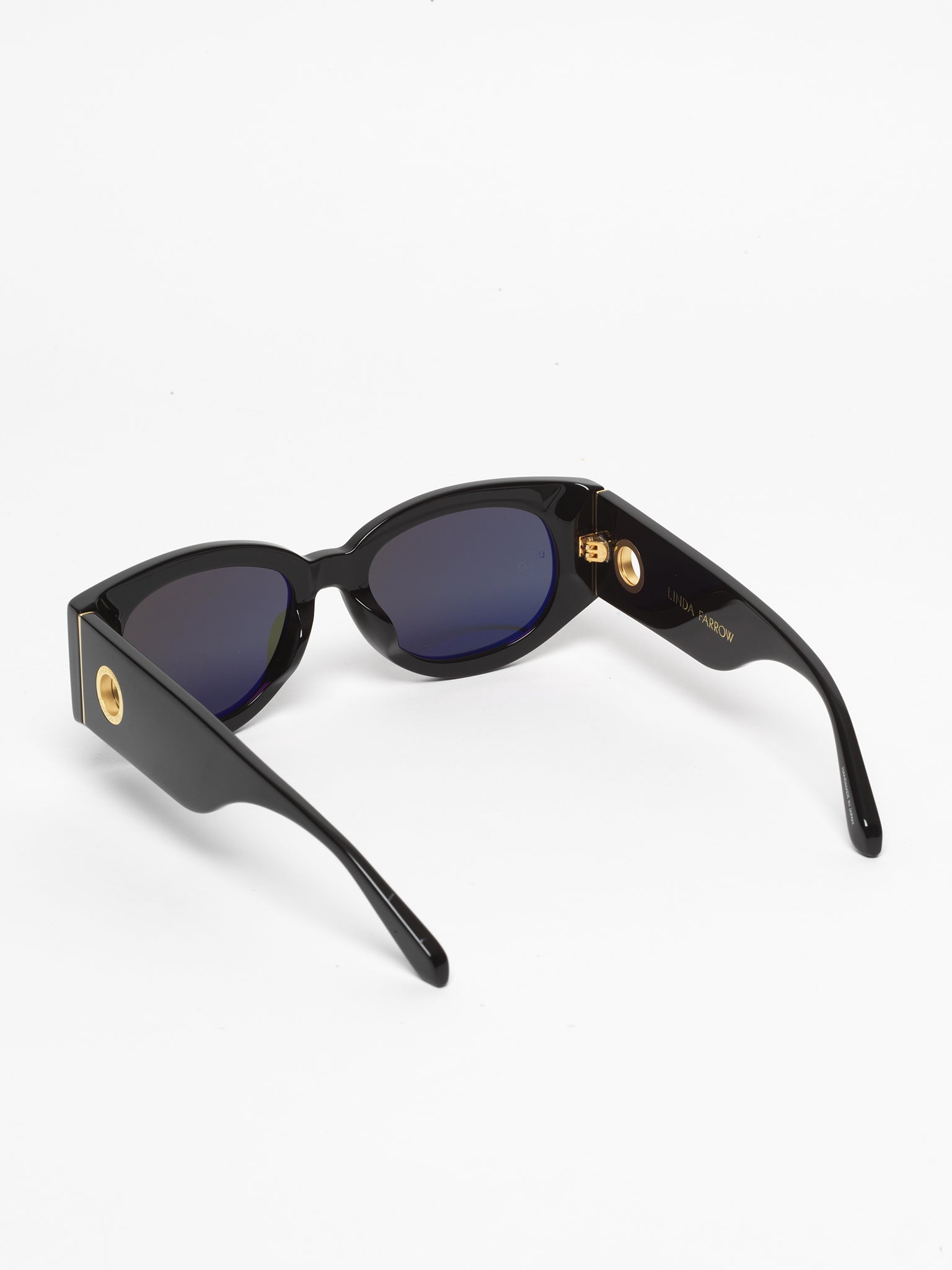 Formed from recycled black acetate these sculpted sunglasses from the LINDA FARROW collection are hand polished for a glossy finish.